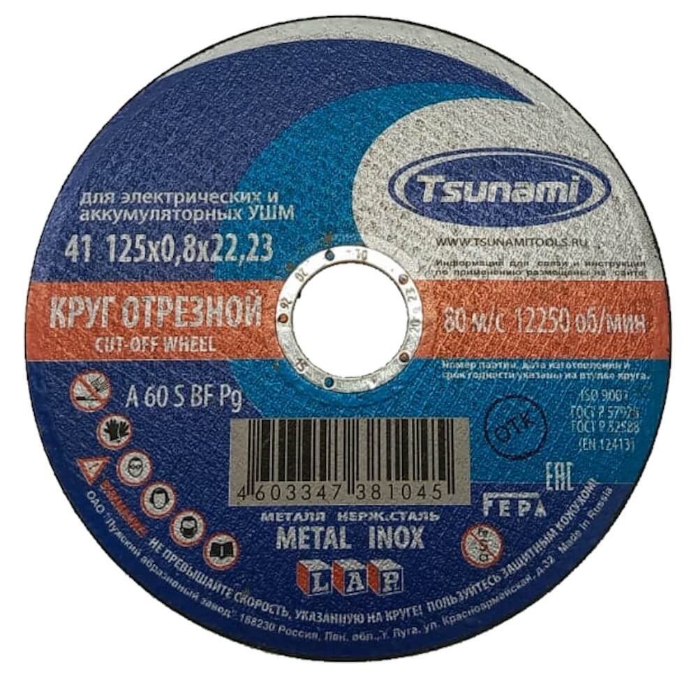 Диск отрезной TSUNAMI по металлу , А60 125х0.8х22.2мм (25шт/уп)