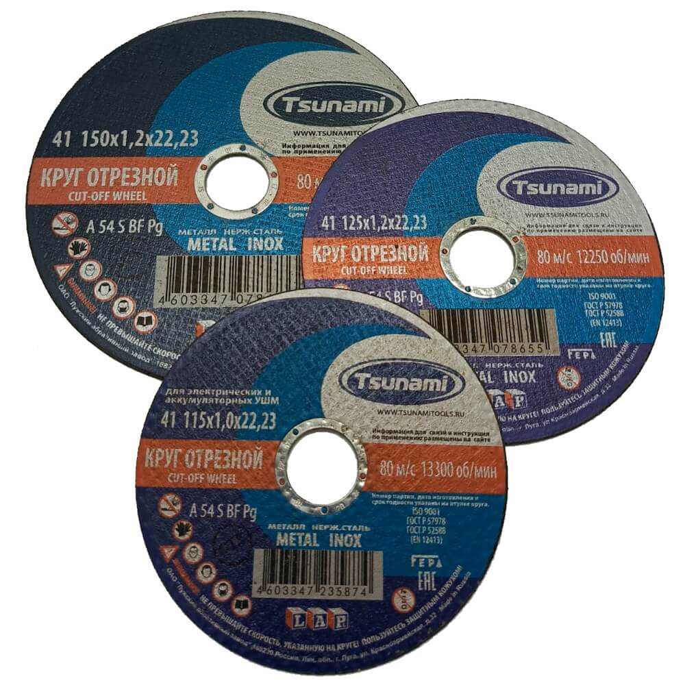 Диск отрезной TSUNAMI по металлу , А54 150х1.2х22.2мм (25шт/уп)